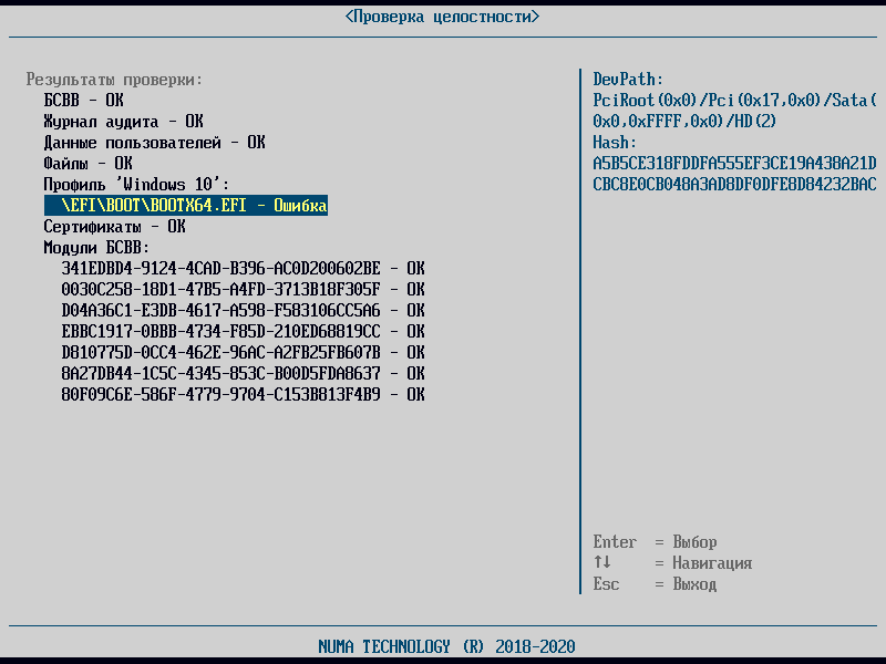 Действия при нарушении целостности загружаемой ОС#