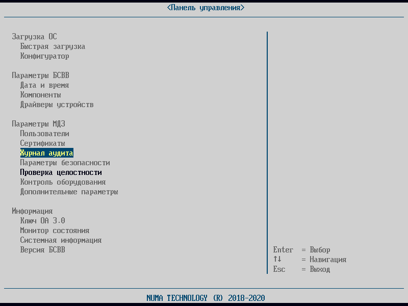«Панель управления» является оснасткой для администрирования Изделием и позволяет выбрать носитель для загрузки ОС, создать конфигурацию загрузки и настроить параметры Изделия.