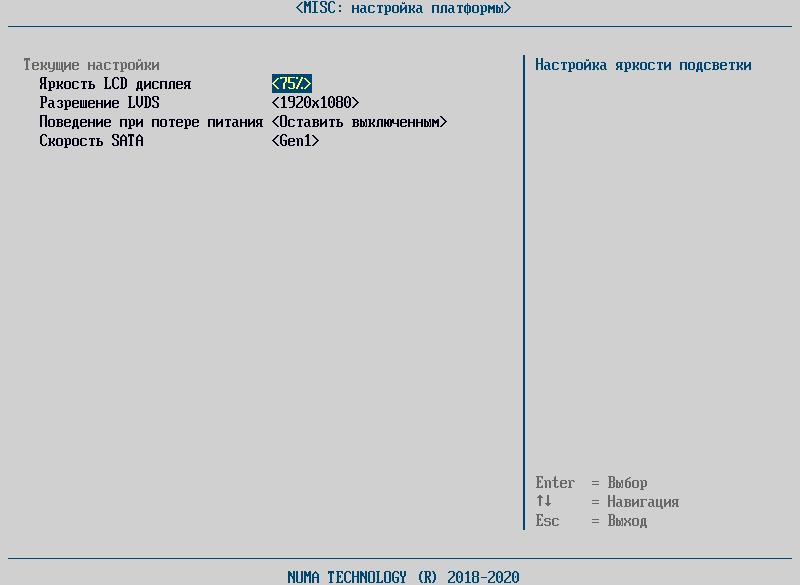 - «Разрешение LVDS» – доступные для установки разрешения: 640*480, 800*480, 1024*768, 1920*1080;