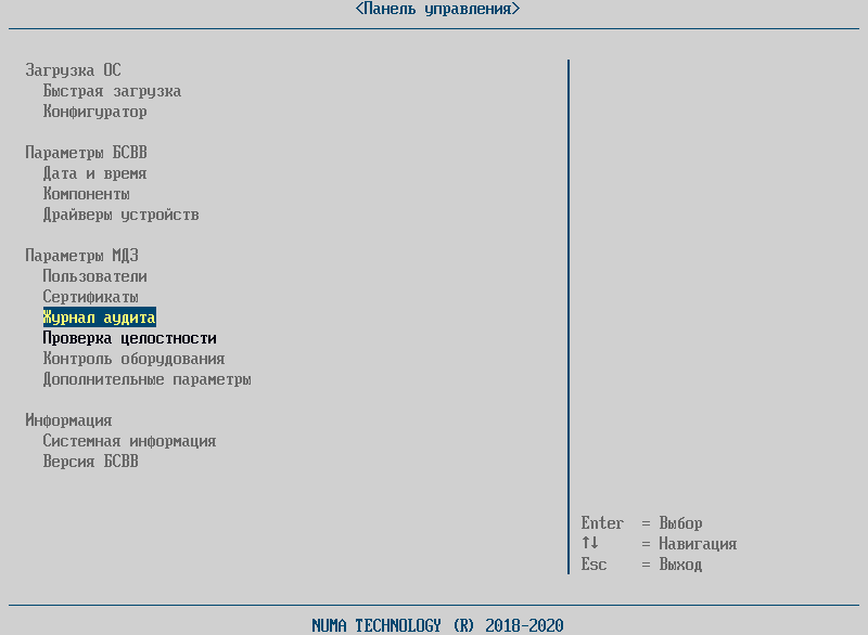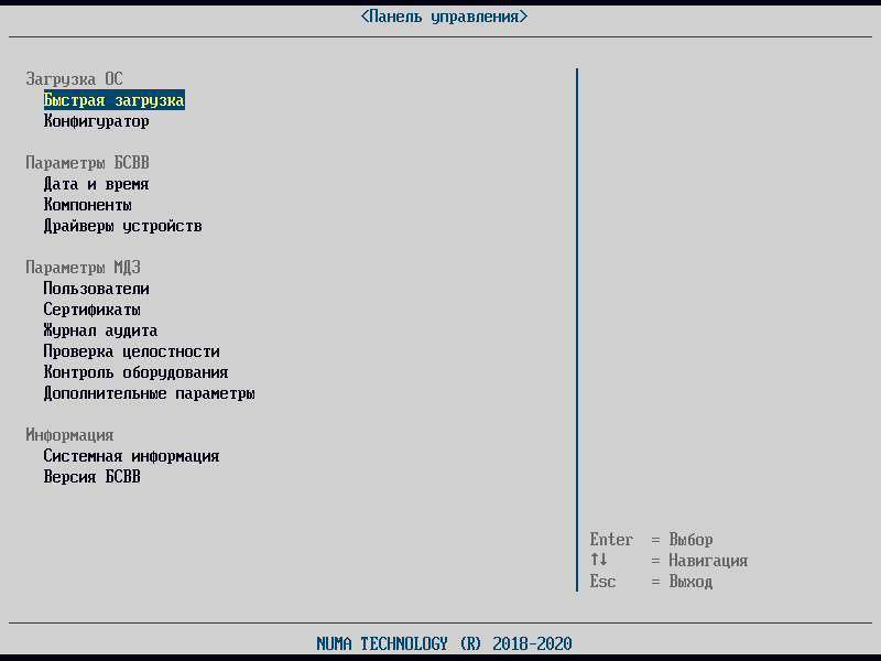 «Панель управления» является оснасткой для администрирования Изделием и позволяет выбрать носитель для загрузки ОС, создать конфигурацию загрузки и настроить параметры Изделия.