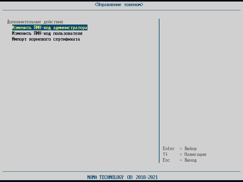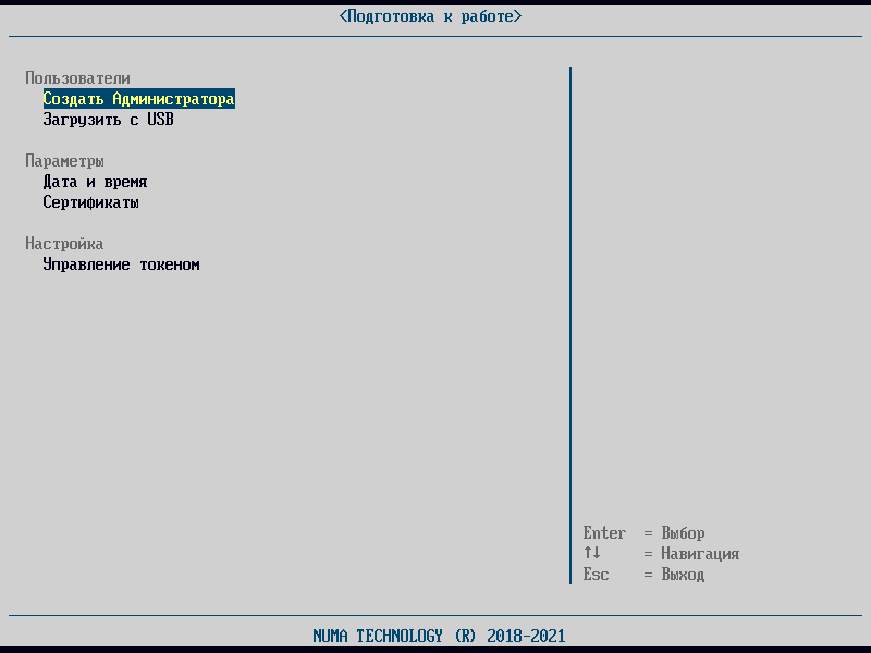после процедуры создания администратора Изделие в автоматическом режиме перезагрузится, после ввода PIN-кода пользователя, отобразится меню «Ручной режим запроса лицензии»;
